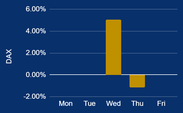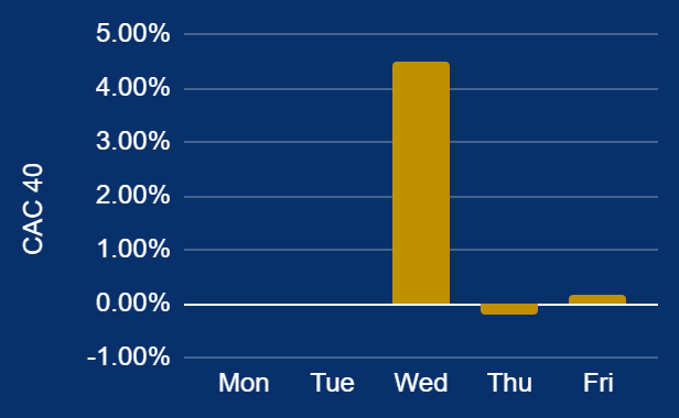 France’s CAC 40 rose 4.44%, benefiting from its high concentration in luxury goods and industrials, which often react positively to improved global sentiment.