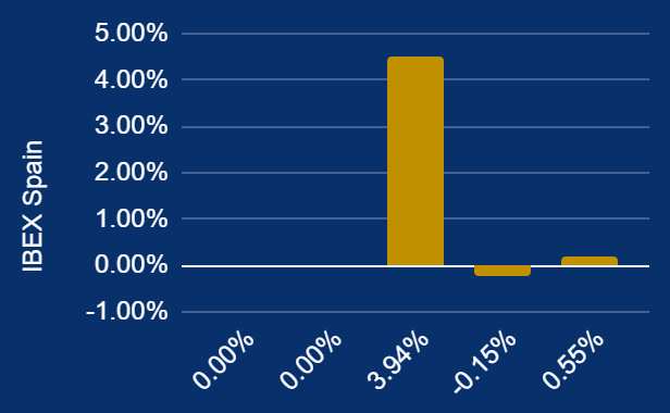 Spain’s IBEX 35 climbed 4.36% as its heavy banking exposure capitalized on the optimistic economic outlook and robust earnings.