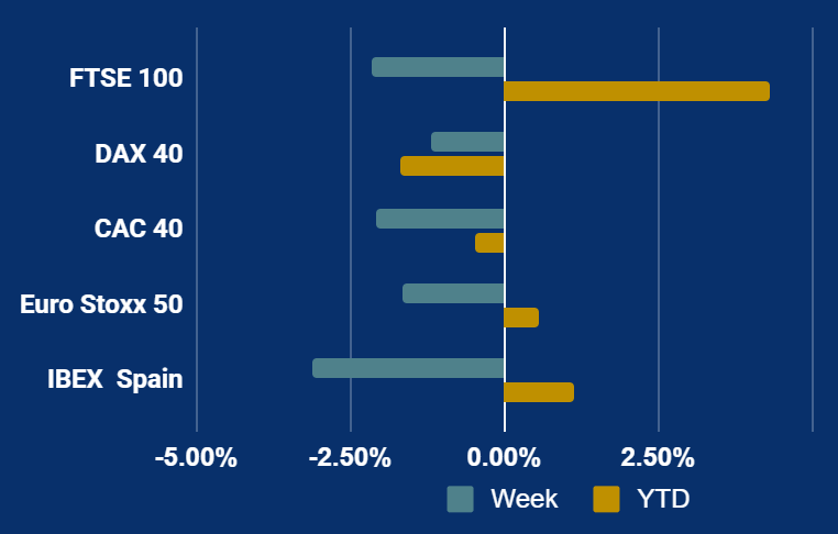 European markets faced significant headwinds this week, primarily driven by escalating geopolitical tensions in the Middle East and a blockade of the Strait of Hormuz.