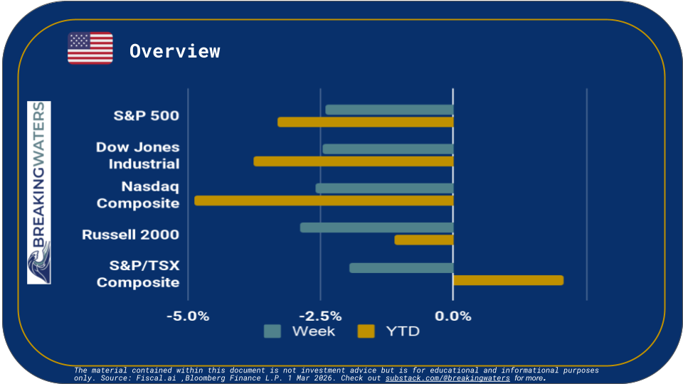 North American indices saw significant volatility this week, primarily driven by the escalating conflict in the Middle East and spiking oil prices.