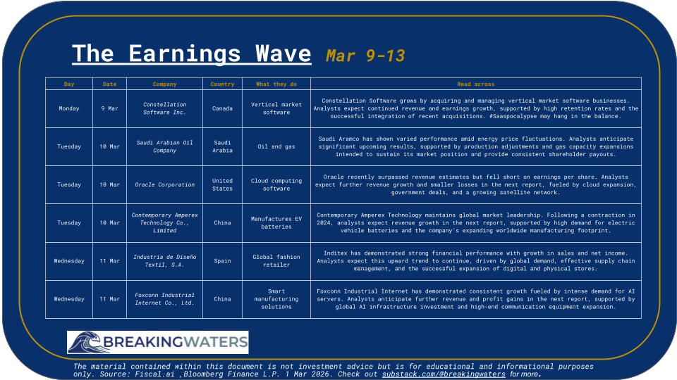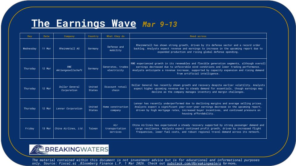 The Coming WaveThe Coming WaveWhat Earnings and Economic Reports are coming March 9th to 13thBREAKINGWATERSMar 08, 20262Share0:00-1:50Audio playback is not supported on your browser. Please upgrade.