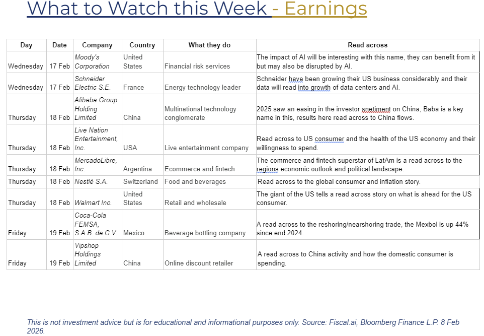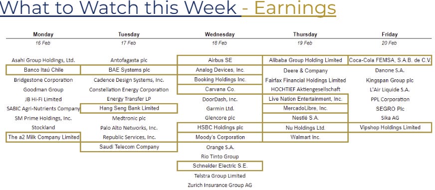 The Global Consumer Stress Test: Is the consumer finally cooling? Reports from Walmart, Nestlé, and Booking Holdings will reveal how spending is holding up against the lingering inflation story in the US and Europe.