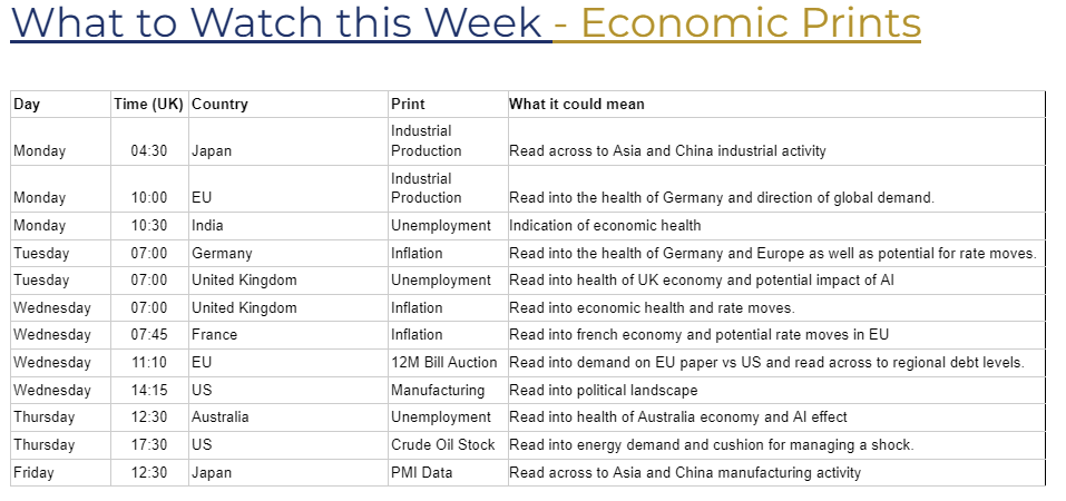 On the economic front, it is a heavy week for central bank watchers. Inflation prints out of Germany, the UK, and France will likely dictate the narrative for European rate moves, while unemployment data from the UK and Australia will offer clues on how AI could be impacting labor market dynamics.