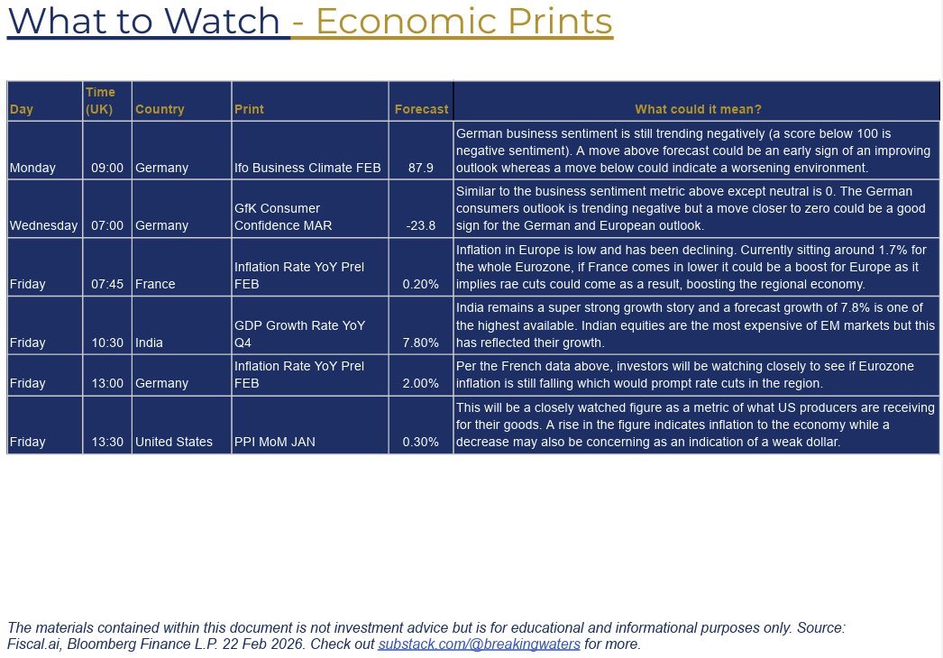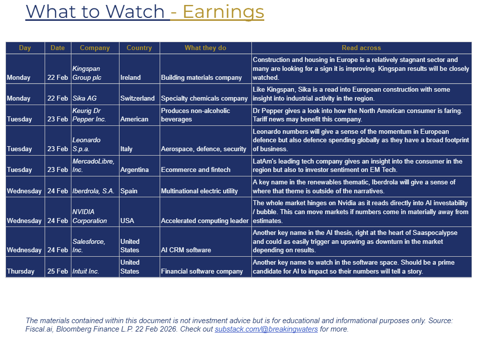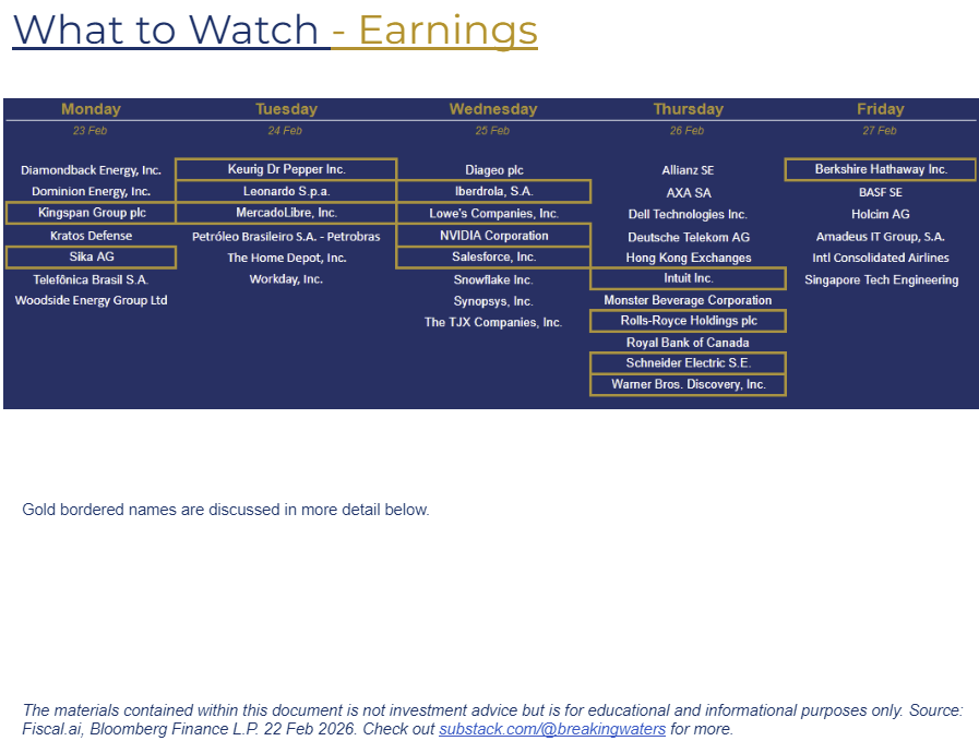 The Coming WaveWhat Earnings and Economic Data is Coming Up Next WeekGet ready for the Week AheadBREAKINGWATERSFeb 22, 2026Share